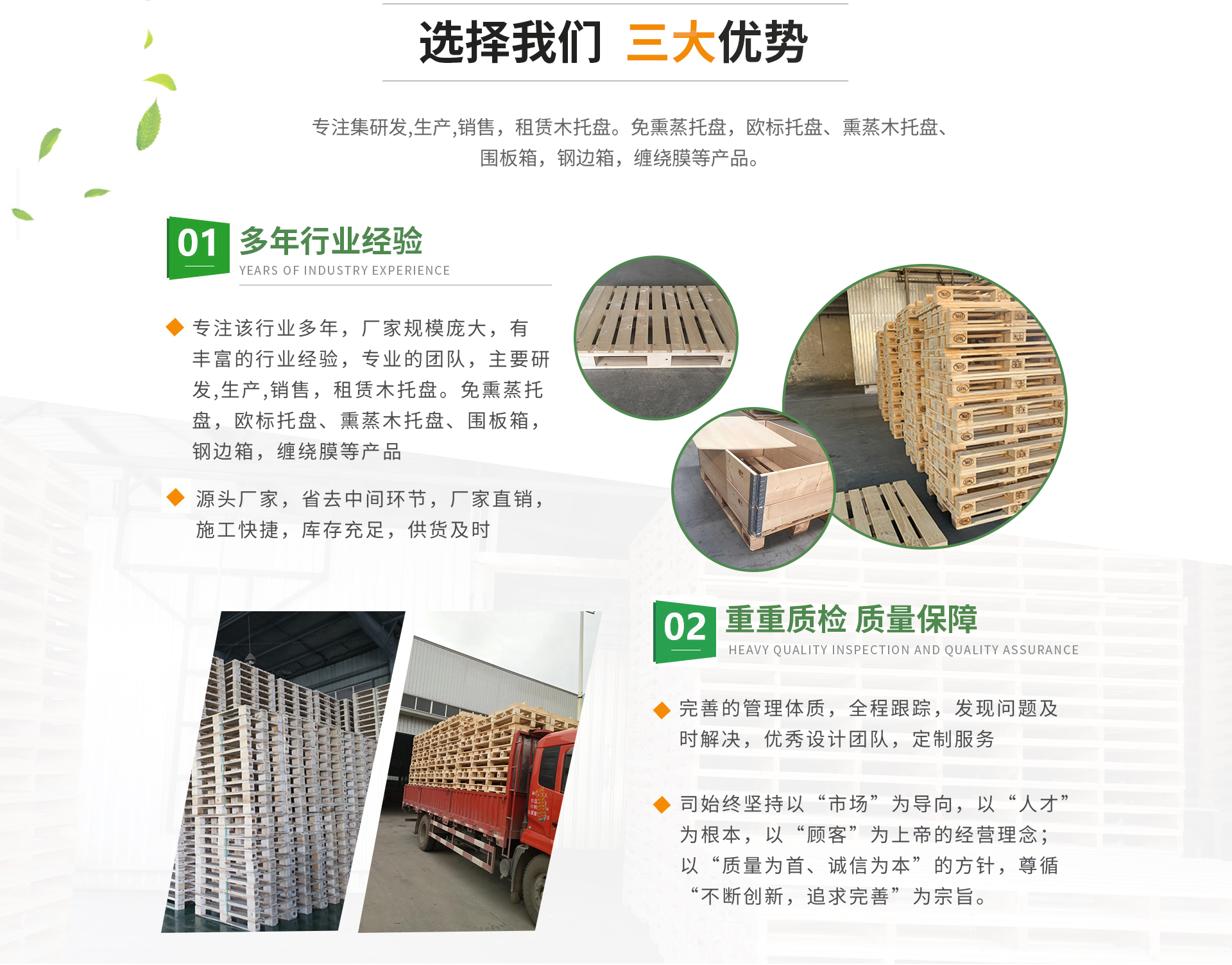 蕪湖奔騰包裝股份有限公司坐落于滬渝高速灣沚出口處3公里,距離灣沚高鐵站6公里,蕪宣客運(yùn)機(jī)場(chǎng)5公里,交通十分便利。我公司是專注集木托盤研發(fā),生產(chǎn),銷售,租賃的綜合服務(wù)商。本公司生產(chǎn)的免熏蒸托盤,歐標(biāo)托盤、熏蒸木托盤、圍板箱,鋼邊箱等產(chǎn)品遠(yuǎn)銷海內(nèi)外。公司本著“以質(zhì)量求生存,以信譽(yù)謀發(fā)展,以服務(wù)拓出路”的服務(wù)經(jīng)營(yíng)理念;重視產(chǎn)品質(zhì)量和服務(wù),為用戶著想。根據(jù)客戶需求,及時(shí)送貨。公司始終堅(jiān)持以“市場(chǎng)”為導(dǎo)向,以“人才”為根本,以“顧客”為上帝的經(jīng)營(yíng)理念;以“質(zhì)量為首、誠(chéng)信為本”的方針,尊循“不斷創(chuàng)新,追求完善”為宗旨。本著生產(chǎn)廠家,減少中間流通環(huán)節(jié)的原則,讓利于每位客戶朋友。我們的產(chǎn)品價(jià)格合理,質(zhì)量過硬,真誠(chéng)歡迎各方客商前來業(yè)務(wù)洽談與合作。